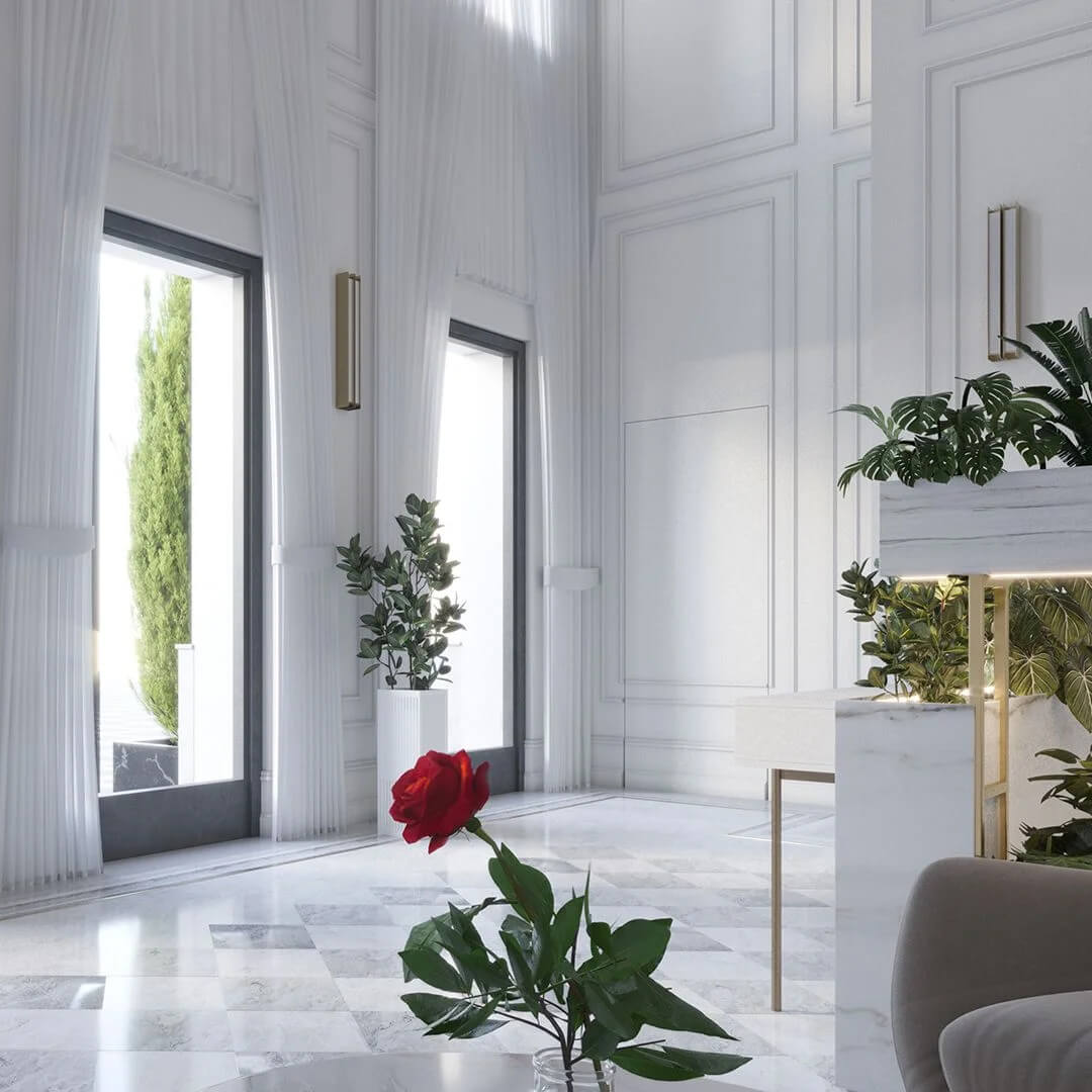 Интерьеры входной группы в «Пречистенке 8» выполнены в лучших традициях бутик-отелей класса люкс, где каждая деталь подчёркивает высокий статус дома и его жителей. Войдя в здание, вы сразу оказываетесь в атмосфере элегантности и уюта, где тщательно продуманы каждая линия и каждый элемент декора.
